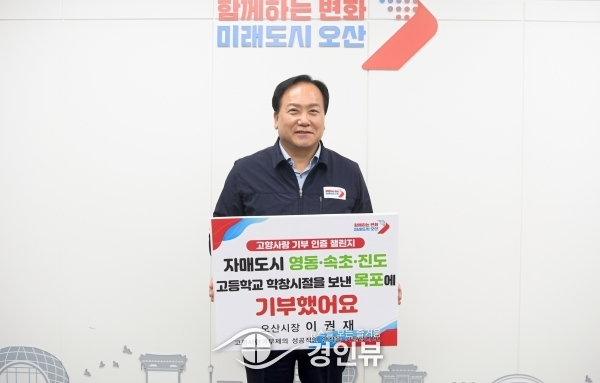 (경인뷰) 이권재 오산시장이 21일 지역사회 기부문화를 촉진하고 지자체 간 상생발전을 위해 고향사랑기부 인증 챌린지에 동참했다.