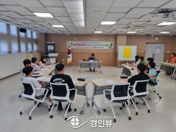 (경인뷰) 이천시 중리동 주민자치회가 19일 중리동행정복지센터에서 이천단월초등학교 6학년 학생들을 대상으로 청소년 모의 주민자치회를 실시했다.
