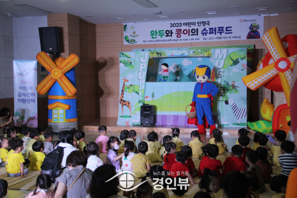 (경인뷰) 오산시 어린이급식관리지원센터는 관내 어린이집 만 1~2세 영유아를 대상으로 오산시 자원봉사센터 1층 대회의실에서 6월 15일 16일 22일 23일 4일간 총 8회에 걸쳐 ‘완두와 콩이의 슈퍼푸드’ 인형극 공연을 개최한다.