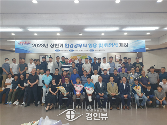 (경인뷰) 이천시는 오랜 기간 깨끗한 이천, 살기 좋은 이천을 만들기 위해 노력해온 환경공무직의 퇴임식과 신규임용자의 임용식을 6월 28일 시청 1층 대회의실에서 실시했다.