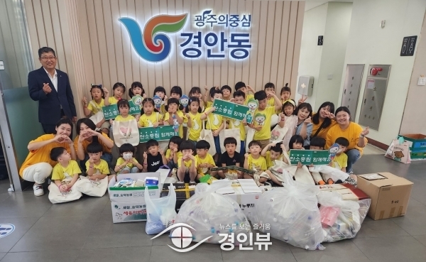 (경인뷰) 광주시 경안동은 27일 국공립 자이어린이집 6, 7세 아동 35명이 참여한 가운데 탄소중립 실천을 위한‘순환자원 교환사업’을 실시했다.