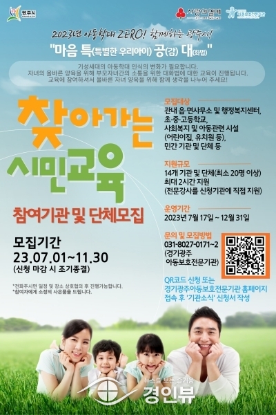 (경인뷰) 광주시는 7월부터 아동학대 인식 개선과 올바른 양육 지식 교육을 위해 경기광주아동보호전문기관과 협업해 '찾아가는 시민교육 마음특공대'를 추진한다.