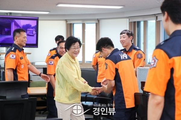 (경인뷰) 취임 1주년을 맞은 김경희 이천시장은 3일 주미배수펌프장을 방문해 여름철 재해대책 현장점검을 실시했고 각종 사건·사고 및 재난대응의 최일선 유관기관인 이천경찰서 지구대 2곳과 이천소방서를 방문해 현장의 애로사항을 청취하며 직원들의 노고를 격려했다.