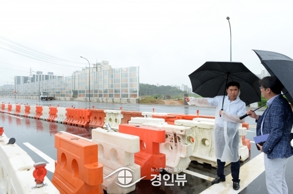 (경인뷰) 오산시 의회 성길용 의장이 지난 6월 30일 서부우회도로 중 부분 개통으로 출근 시간대 교통대란이 발생하는 초평동 현장을 방문했다.