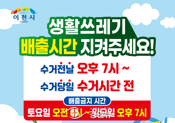 (경인뷰) 이천시는 본격적인 여름을 맞이해 쓰레기로 인해 주민들이 불편을 겪지 않도록 생활쓰레기 배출시간 준수 집중 홍보 및 단속을 실시한다.