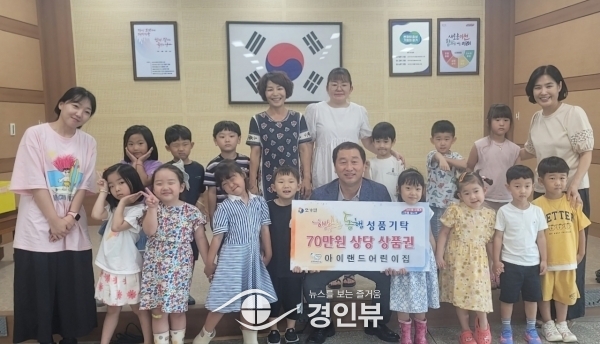 (경인뷰) 이천시 모가면 소재 아이랜드어린이집 은 70만원 상당의 상품권을 이웃돕기 성품으로 모가면 행정복지센터에 방문해 이달 10일 기탁했다.
