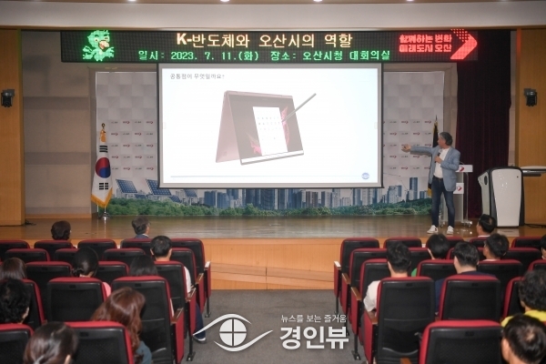 (경인뷰) 오산시는 11일 오전, 시청 대회의실에서 4차 산업혁명 시대 대표 미래 먹거리 중 하나인 반도체 산업 관련된 직원 교육을 진행했다.