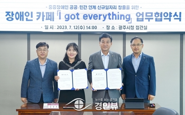(경인뷰) 광주시와 한국장애인부모회 광주시지부는 12일 광주시청 접견실에서 장애인 카페 ‘I got everything’의 운영관련 업무 협약을 체결했다.