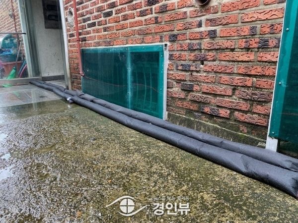 (경인뷰) 관고동 행정복지센터에서는 지난 12일 장마철 집중호우에 침수 위험이 있는 반지하 주택에 거주하는 거동이 불편한 장애인 주거지에 우선적으로 물막이 주머니을 설치했다.