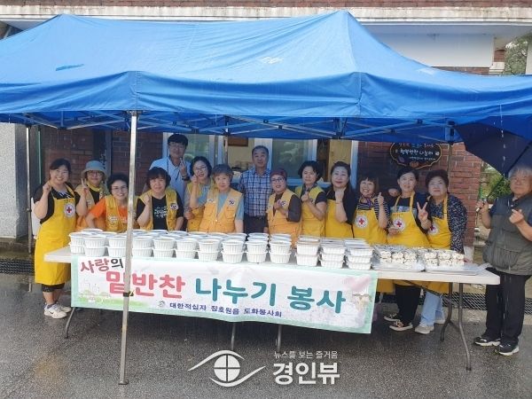 이날 도화봉사회는 동경기인삼농업협동조합에서 후원한 닭과 재료들로 관내 독거노인, 장애인 등 취약계층의 원기회복을 위한 삼계탕을 직접 조리해 배달했다.