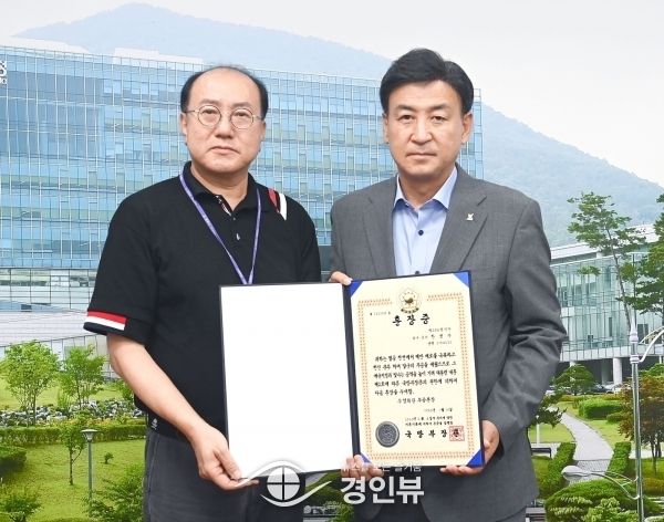 (경인뷰) 광주시는 14일 6·25전쟁에 참전해 무공을 세운 고 한생수 중사의 아들 한상곤씨에게 무공훈장과 훈장증 및 기념패를 전수했다.