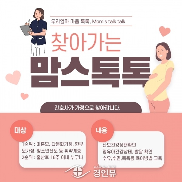시 관계자는 “찾아가는 맘스톡톡 서비스 제공으로 건강한 출산과 양육을 위해 필요한 정보를 제공하고 출산 친화적 분위기 조성에 기여하는데 노력할 것”이라고 밝혔다.
