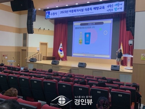(경인뷰) 수원시는 18일 시청 대강당에서 아동복지시설을 대상으로 ‘식중독 예방 특별교육’을 했다.