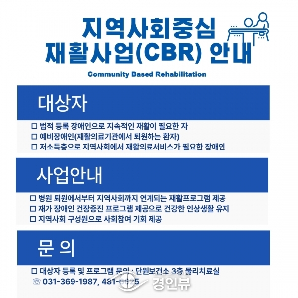 (경인뷰) 안산시 단원보건소는 지역사회 장애인의 건강한 생활과 재활 인프라 구축을 위해 ‘지역사회중심 재활사업’을 진행한다고 19일 밝혔다.