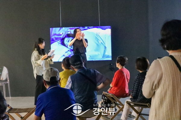 손한올 수어 해설사와 함께 수원시립미술관에서 개최 중인 전시 ‘어떤 Norm’을 도슨트가 설명하고 현장에서 수어 해설 서비스를 제공해 편안하게 전시를 이해할 수 있도록 했다.