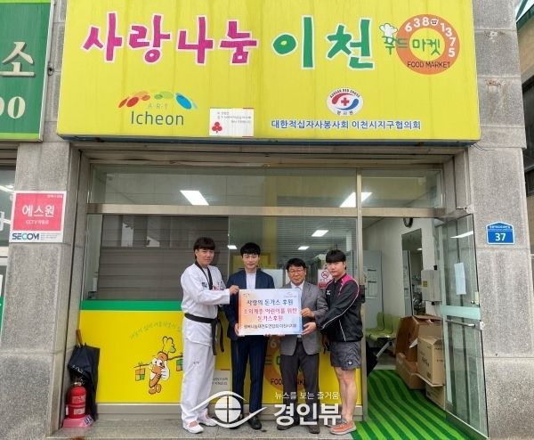 (경인뷰) 사단법인 행복나눔태권도연합회 이천시지부에서 관내 소외계층 어린이를 위한 돈가스 150봉을 이천시 이웃돕기사업 행복한 동행을 통해 사랑나눔이천푸드마켓에 돈가스를 전달했다.