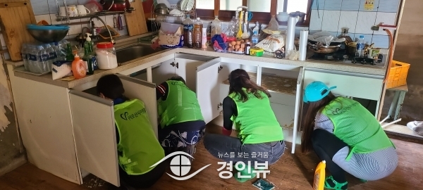 이날 자원봉사자들은 폭우로 피해를 입은 수해민의 신속한 피해복구와 일상 회복을 위해 더운 날씨 속에서도 구슬땀을 흘렸다.