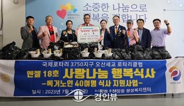 (경인뷰) 국제로타리 3750지구 오산세교로타리클럽이 지난 21일 신장동 행정복지센터를 방문해 관내 취약계층 독거노인을 설렁탕과 반찬, 도시락 40인분을 기탁했다.