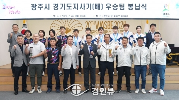 (경인뷰) 방세환 광주시장은 24일 광주시청 중회의실에서 2023 경기도지사기 대회 여성축구, 탁구팀 우승에 따른 봉납식을 개최했다.