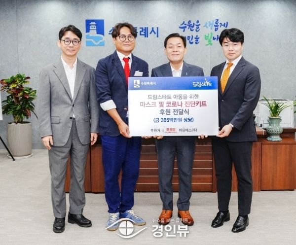 (경인뷰) 비유에스가 “수원시 취약계층 아동에게 전달해 달라”며 월드비전 경기남부사업본부에 마스크·코로나19 진단키트 등 3억 6500만원 상당 물품을 후원했다.