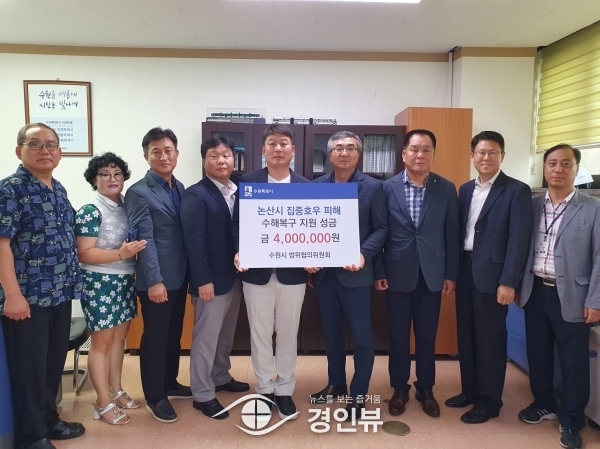 (경인뷰) 수원시 방위협의위원회가 “자매도시 논산시의 호우피해 긴급 복구에 사용해 달라”며 회원들이 모은 구호성금 400만원을 수원시에 기탁했다.