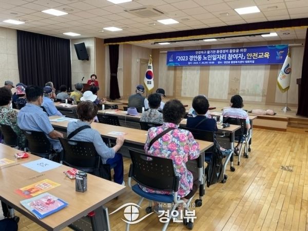 (경인뷰) 광주시 경안동은 26일 경안동행정복지센터 4층 대회의실에서 경안동 노인일자리사업에 참여하는 청소반장 어르신 50명을 대상으로 안전교육을 실시했다.