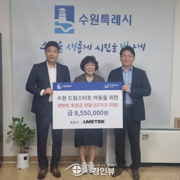 (경인뷰) ㈜아미텍 코리아가 굿네이버스 경기지역본부를 통해 수원시 드림스타트 아동 가구에 냉방비 855만원을 기부했다.