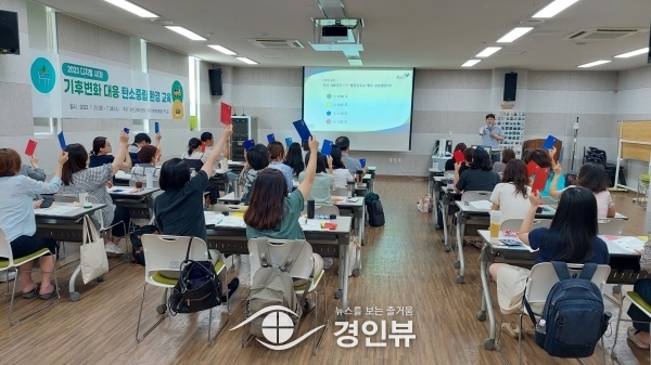 (경인뷰) 수원시 기후변화체험교육관은 25~26일 교육관에서 수원 관내 초·중·고등학교 교사 대상으로 ‘2023학년도 디지털 시대 기후변화 대응 탄소중립 환경교육 연수’를 열었다.