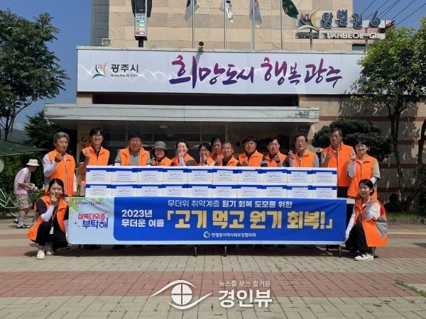 (경인뷰) 광주시 탄벌동 지역사회보장협의체가 28일 관내 50가구를 대상으로 ‘무더운 여름 고기 먹고 원기 회복’사업을 추진했다.