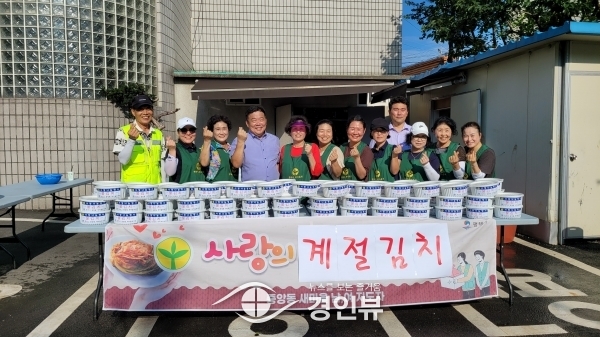 (경인뷰) 평택시 중앙동 새마을부녀회 10여명은 지난 27일 중앙동 행정복지센터에서 계절 김치 나눔 행사를 했다.