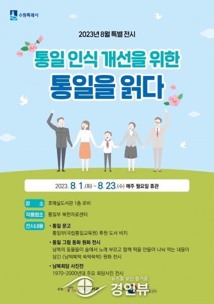 (경인뷰) 수원시 호매실도서관이 1일부터 23일까지 도서관 로비에서 특별전시 ‘2023 통일을 읽다’를 연다.