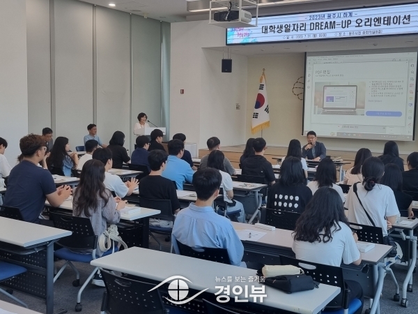 (경인뷰) 광주시는 ‘2023년 광주시 하계 대학생 일자리 DREAM-UP’ 오리엔테이션을 진행했다고 2일 밝혔다.