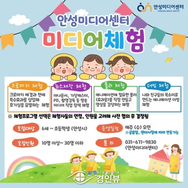 (경인뷰) 안성미디어센터는 2023년 8월 2일부터 연말까지 어린이 대상의 미디어 체험 프로그램을 운영한다.