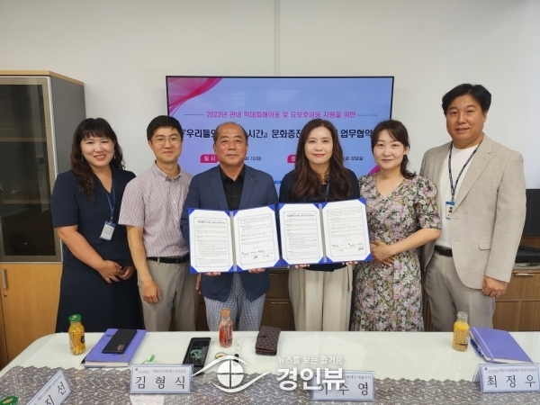 (경인뷰) 오산시는 지난 8일 오산문화재단과 관내 학대피해아동 및 요보호아동의 정서적 지원을 위한 문화증진 프로그램인 ‘우리들의 행복한 시간’지원 업무협약을 체결했다고 밝혔다.