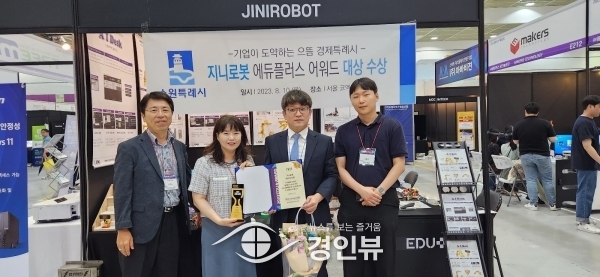 10~13일 코엑스에서 열리는 ‘제14회 에듀플러스위크 미래교육 박람회’에는 하반기 참여업체 ‘지니로봇’이 참석, 10일 박람회에서 열린 ‘2023 에듀플러스 어워드’ 시상식에서 최고상인 대상을 받았다.
