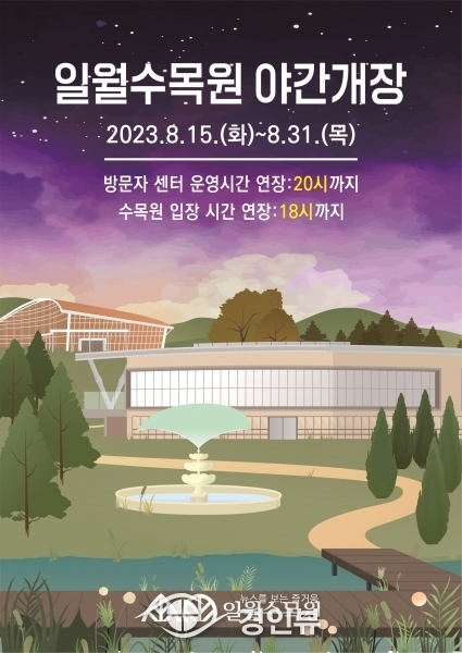(경인뷰) 수원시가 하절기를 맞아 8월 15일부터 31일까지 일월·영흥 수목원을 야간에 연장 운영한다.