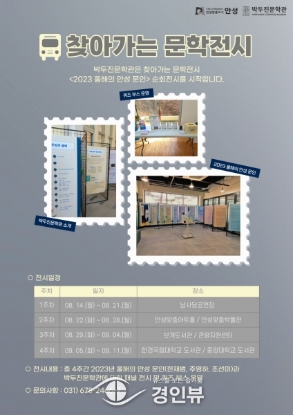 (경인뷰) 안성시 박두진문학관은 8월 14일부터 9월 11일까지 4주간 ‘찾아가는 문학전시 : 2023 올해의 안성 문인’을 운영한다고 밝혔다.