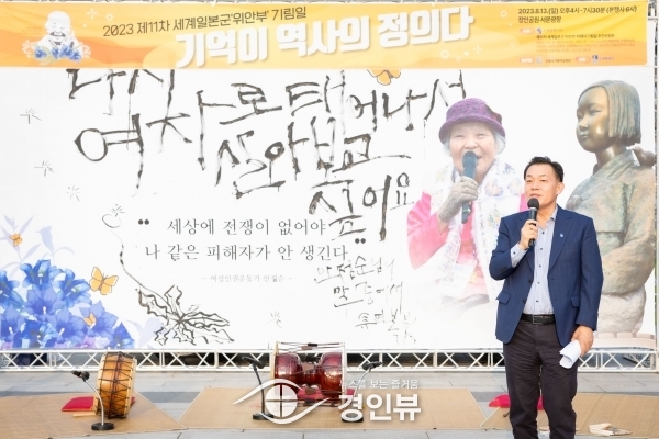 13일 수원 장안공원 서문광장에서 열린 ‘제11차 세계일본군 ‘위안부’ 피해자 기림일’ 행사 ‘기억이 역사의 정의다’에 참석한 이재준 시장은 “10년 전 기림일 행사를 시작할 때 피해 할머니 58분이 생존해 계셨는데, 지금은 9분만 남았다”며 “일본 정부가 하루빨리 할머니들께 사과하고 역사가 바로잡히길 바란다”고 말했다.