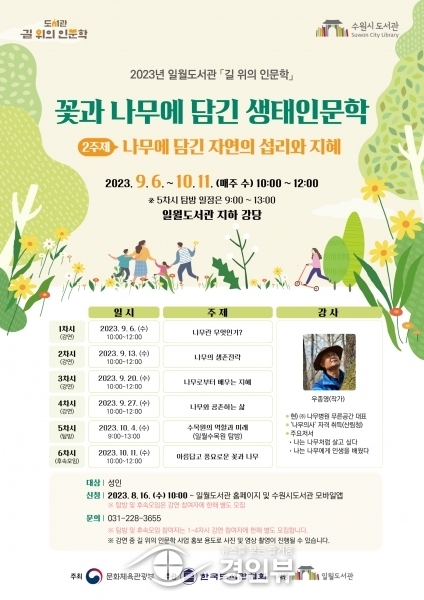 (경인뷰) 수원시 일월도서관이 ‘2023년 길 위의 인문학 2주제-나무에 담긴 자연의 섭리와 지혜’에 참여할 시민을 16일 오전 10시부터 선착순으로 모집한다.