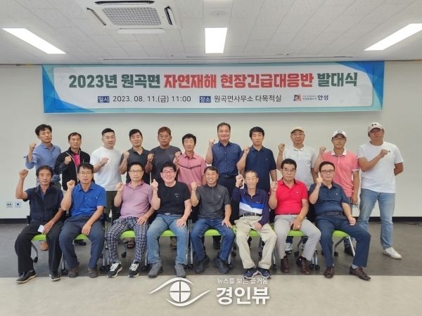 (경인뷰) 안성시 원곡면에서는 이장단협의회, 의용소방대, 지역자율방법대와 함께 자연재해 현장긴급대응반 발대식을 개최하고 본격적인 활동에 돌입했다.