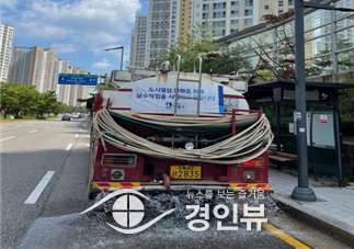 (경인뷰) 수원시가 폭염으로 인한 시민 피해를 최소화하기 위해 폭염특보가 발령되면 살수차를 운영하고 노면빗물분사시설을 가동한다.