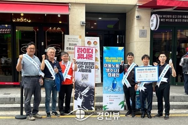 이날 캠페인에는 수원시노사민정협의회·코레일유통 경기본부·라이더유니온 수원지부·수원시비정규직노동자복지센터·수원시 노동정책과 관계자 등 20여명이 참여해 B마트에 온 이동노동자들에게 온열질환 예방수칙을 알리고 생수를 제공했다.