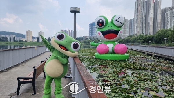 수원시는 9월11일까지 광교호수 초등학교 앞 원천호수 위에 ‘수원이 조형물’을 전시한다.