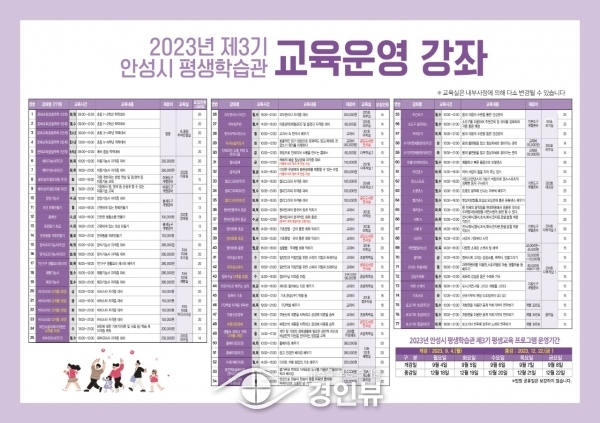 (경인뷰) 안성시 평생학습관은 2023년 제3기 평생학습관 프로그램 수강생을 모집한다고 전했다.
