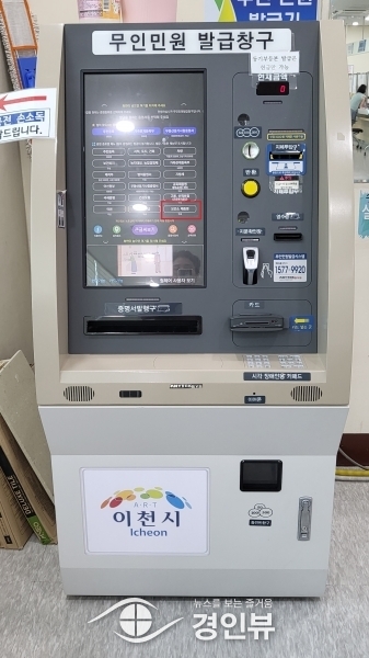 (경인뷰) 이천시는 관내 행정복지센터 무인민원발급기에서 보건증을 포함한 보건소 제증명서를 발급받을 수 있도록 민원 행정 서비스를 시작한다고 밝혔다.