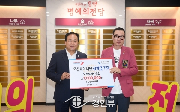 (경인뷰) 오산시는 지난 21일 시청 1층 명예의 전당에서 오산 로타리클럽으로부터 지역 특기생 육성을 위한 장학금 1백만원을 기탁받았다고 밝혔다.