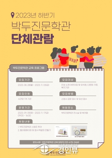 (경인뷰) 안성시 박두진문학관은 오는 8월 28일부터 11월 03일까지 하반기 단체관람 참여기관을 모집한다고 밝혔다.
