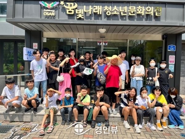 (경인뷰) 오산시 꿈빛나래청소년문화의집 방과후아카데미의 3대 환경보호 동아리 '꿈빛나래 도시농부', '꿈빛 아트 팩토리', '꿈빛 창작소'가 연합해 지난 19일 문화의집 주변 빗물받이 세 곳에 그림을 그렸다.