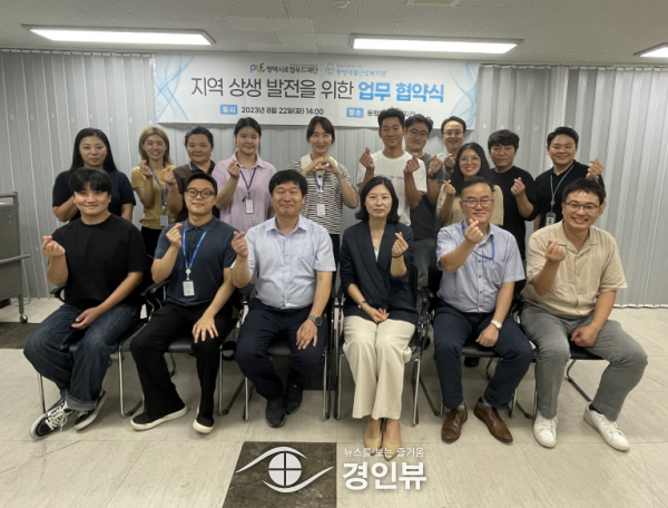 (경인뷰) 지난 22일 화요일 오후 4시 동방재활근로복지관 2층 회의실에서 평택시로컬푸드재단과 동방재활근로복지관이 업무협약 MOU를 체결했다.