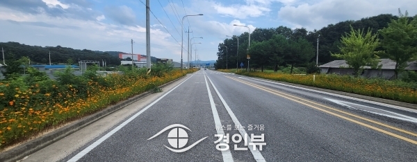 최근 호법면을 들어오는 주요 길목 중 하나인 롯데아울렛 ~ 단천리 방향 롯데아울렛로에 황화코스모스 꽃길을 조성해 시민들의 눈길을 끌고 있다.